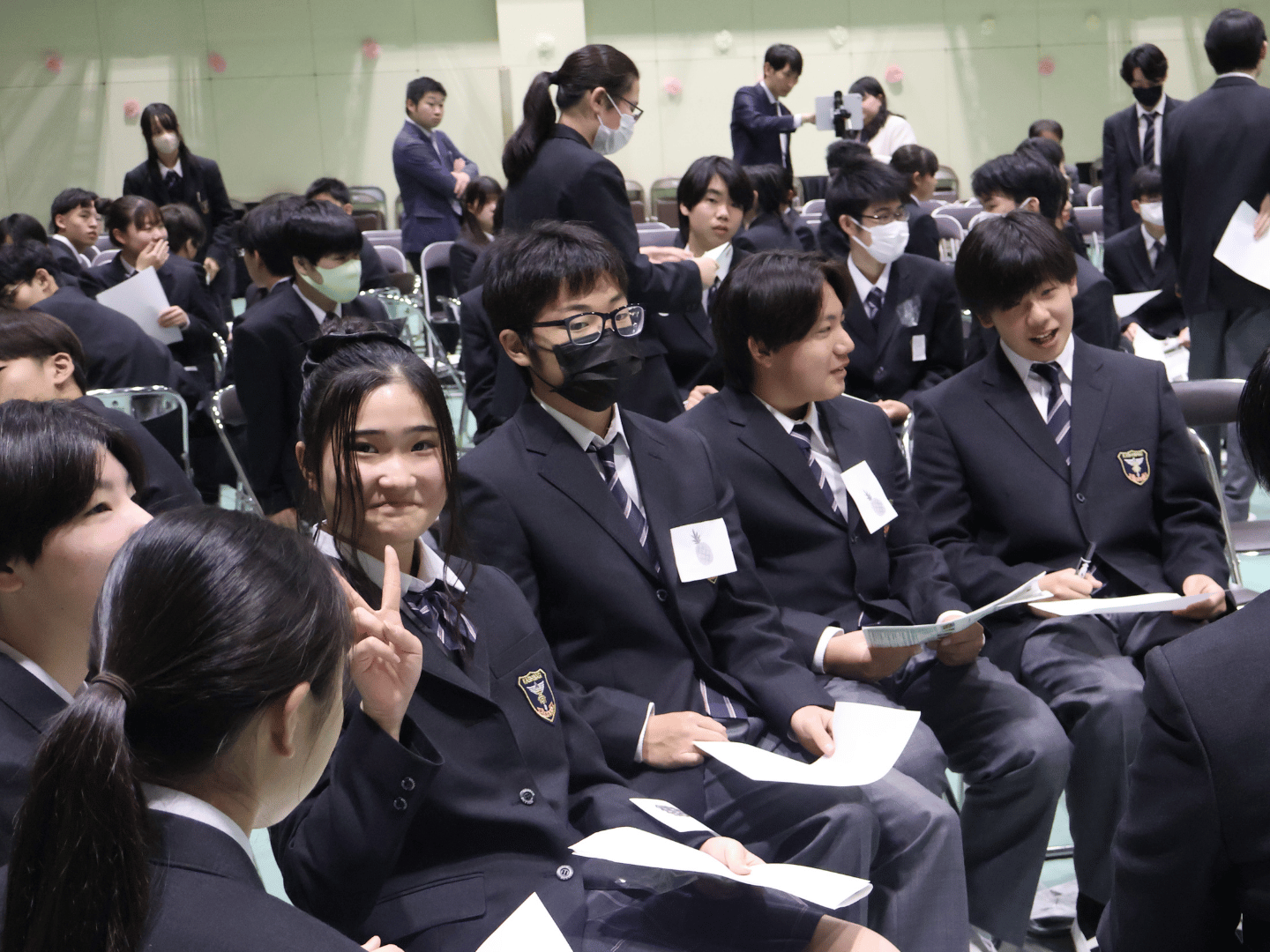 新入生歓迎会を実施しました。 本日、生徒会主催の新入生歓迎会を実施しました。部活動紹介では、それぞれの部活がパフォーマンスをしながらPRを行いました。その後のゲーム大会では、生徒会の先輩たちが企画したゲームを小グループで実施しました。これまで緊張していた新入生から笑顔が多くみられ、楽しんでいる様子が印象的でした。生徒会の皆さん、新体制となって初めての行事運営、お疲れさまでした。ここで得た経験を体育祭・文化祭に活かしてほしいです。