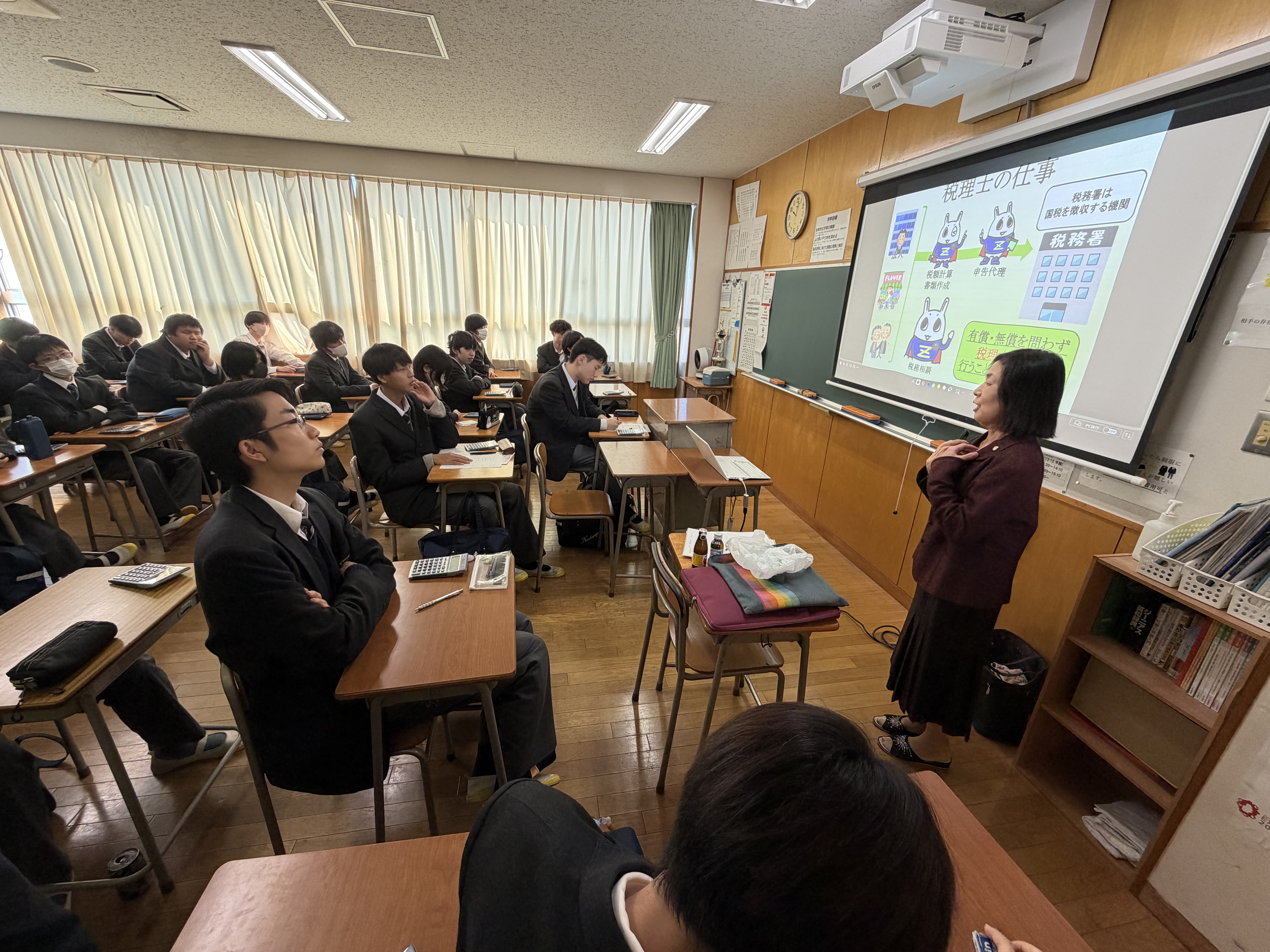 租税教室を実施しました 12/10(水)に2年生を対象として、租税教室を実施しました。 東京地方税理士会 神奈川支部の税理士の先生方にご来校いただき、 身近にありながらも仕組みが難しい税についてお話いただきました。